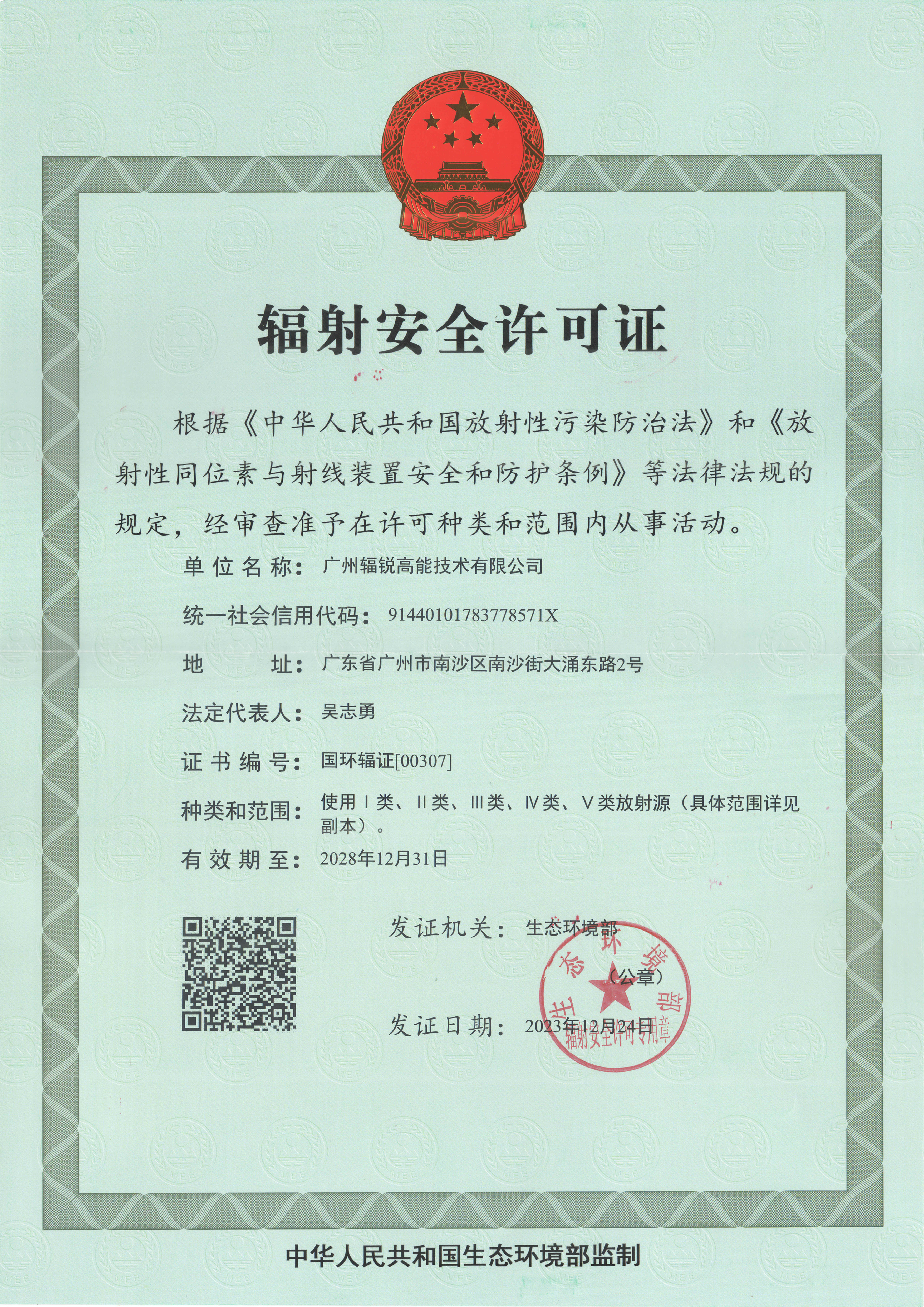 廣州輻銳高能技術有限公司系廣州科技金融集團有限公司下屬全資公司,是專業利用放射性同位素鈷-60進行核技術應用的高新技術企業。我司位于廣州市南沙區大涌東路2號,立足于粵港澳大灣區核心門戶,擁有廣州國際航運中心南沙港合伙南沙港鐵路所形成的海鐵國際聯運系統核心區域優勢,服務半徑覆蓋華南地區,并觸及全國及全球范圍。